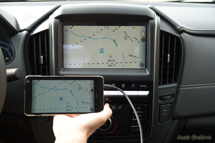 ▲導航是以手機安裝LUXGN開發的Hi Navi程式投射到中控螢幕上。