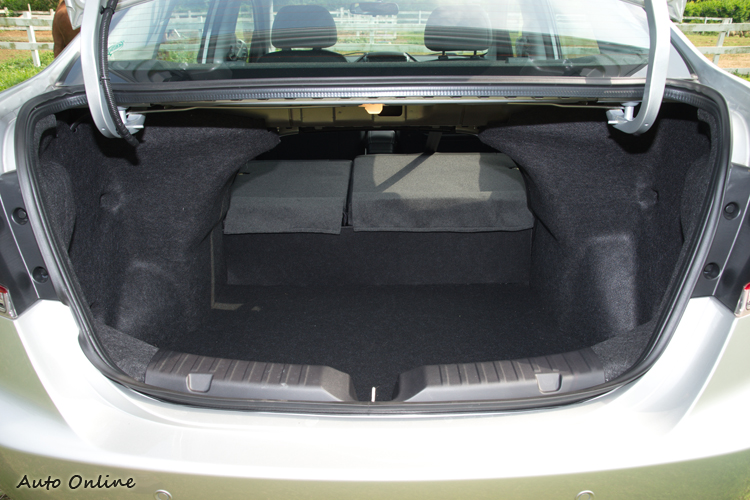 ▲行李廂容量不小,也可將後座放倒,不過被結構佔用的空間也不少。