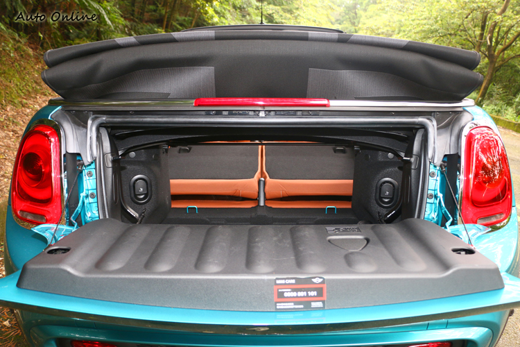 ![]() ▲後座空間狹小、椅背角度過直,不建議成人乘坐。MINI的後行李廂空間已經很小了,敞篷車型卻比一般車型多了4L達到215L,如果頂蓬開啟的狀態下,後廂容積則為160L,另外,原廠標準配備Easy Load便利裝載功能,可以增加行李廂開口面積,讓放置拿取行李時更輕鬆,搭配載重高達80kg的下掀式尾門以及50/50分離式後座椅背設計,小空間下也有大便利。 ![]() ▲50/50分離式後座椅背設計,小空間下也有大便利。
