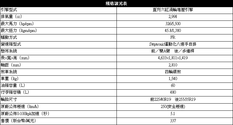 新世代B58B30引擎![]() BMW 340i是三系列小改款車型,除了外觀有細微修飾外,與前一代最大差別在於代號重新更名。 ![]() ▲BMW 340i是三系列小改款車型,除了外觀有細微修飾外,換上全新引擎。![]() ▲335i引擎代號N55B30,更名340i後引擎代號為B58B30。B58B30渦輪技術上有所更動,渦輪本體進規與排規的口徑微微放大,提供較強勁的推力,為了要降低渦輪遲滯原廠縮短渦輪管路,從原本氣冷式進氣冷卻器改成水冷式,水冷冷卻器與進氣歧管結合,拿掉原本要繞道車頭的路徑,達到快速渦輪進氣效率。另外,渦輪車必備的洩壓閥,改由更精準的全電子化,只要達到設定壓力就開起洩壓,有效穩定渦輪壓力及耐用度。 ![]() ▲搭配Steptronic運動化八速手自排變速箱,靜止加速到百公里只需要5.1秒。