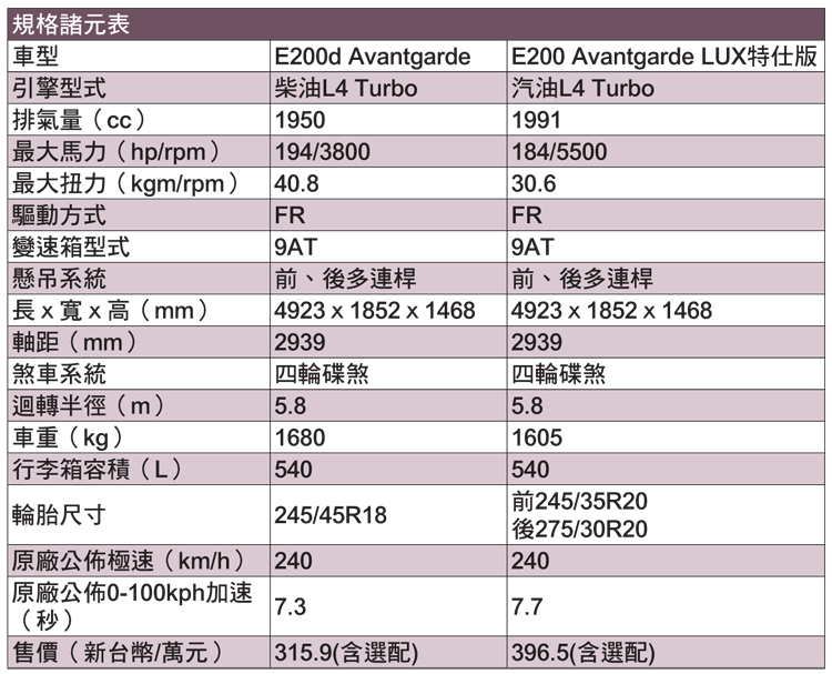 即使賓士旗下擁有相當完整壯盛的休旅車系選擇,但轎車系列一直都是這家車廠最重要的車型,原廠一直都是把所有最新研發的科技率先搭載在轎車系列,可見這確實是最能代表品牌核心價值的產品。在賓士的傳統三大房車級距S-E-C之中,彼此的位階分佈並不像一般人以為的那樣平均,因為位處中階的E-Class一直都被賓士刻意設定為更接近於S-Class。在進入第10代之後,這樣的趨勢更明顯,無論在底盤架構、懸吊系統、車體概念或是影音系統方面,E都是向S看齊。過去E-Class都以先進安全作為重要的賣點,而本次全新導入的半自動駕駛輔助技術更成為一大亮點,無論在實用性或易用性都令我們相當滿意,也讓人對於即將到來的智慧車時代充滿美好的憧憬。