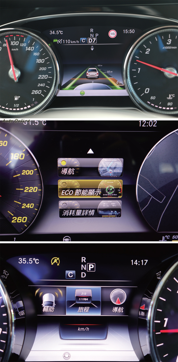 實用且易用的駕駛輔助![]() ▲結合車道辨識和定速測距功能,遇到轉彎時也會自動轉向跟上前車。還是得留些版面來說說它的Intelligent Drive智慧駕駛輔助系統,因為新的系統實在太好用了。其實E-Class全車系就已經標配基本的主動防護系統,譬如主動防撞輔助和移動行人偵測和主動停車輔助附後方車流警示,這些都不需另外選配。想要智能定速測距功能,可以花5.9萬選配,但我們會強烈建議直接選配8.7萬的智慧駕駛輔助套件,因為這樣不但有ACC,還能多出轉向輔助、閃避轉向輔助、主動車道維持....等一堆實用的功能。我們之所以推薦E-Class車主選配它的理由,就是能在0-210km/h區間自動跟隨前車,而且不管前面是靜止或移動中的汽車或摩托車,都能自動調整跟車距離。最厲害的是,這套系統連方向盤也會一併控制!用比較誇張的說法就是:只要一啟動定速後,E-Class就變成自動駕駛車了。當然系統為了避免駕駛過度分心,每隔一段時間偵測到方向盤無人控制時就會發出警告,連續三次後會發出警報聲,然後逐漸減速,此時如果還不接手方向盤,車輛就會自動煞停,這是為了避免駕駛失去意識造成車輛持續行進造成危險。 ![]() ▲定速下超過一定秒數沒有碰觸方向盤,儀錶會開始以畫面提醒。![]() ▲透過中央顯示幕可以充分掌握車輛狀況,包括懸吊高度或儀錶模式都能調整。賓士早在幾年前就把自動停車系統普及於旗下車款,不過以往所謂的自動,還是需要駕駛者自行控制煞車和檔位,而今升級版的系統更先進,只要確認停車位後,就能完全交給系統,方向盤、油門、煞車、前進、後退都是由系統自動控制,達到真正的「自動停車」階段。這套系統還支援路邊停車、倒車入庫和自動駛出停車位功能,而且過程中一旦偵測到行人位在路線範圍內,就會停止運作並排入P檔啟動手煞車,實際體驗幾次發現還蠻好用的,期待這套升級版能夠早日下放到其他車系之中。
