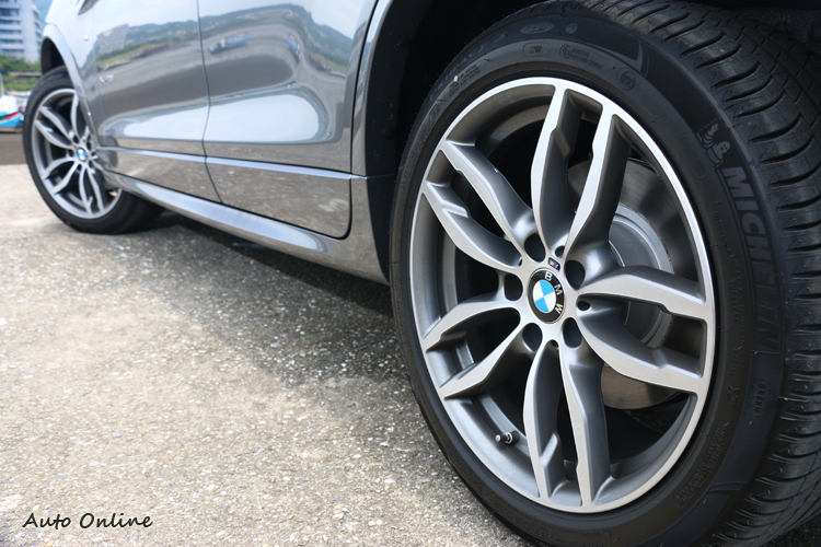 鋁圈為雙輻式622型,前8.5J 245/45R18與後9.5J 275/40R19跑車輪胎,都市休旅表露無遺。
