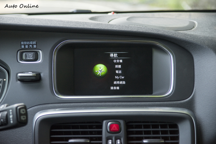 中控台上方原廠Sensus Connect連網影音娛樂系統(與XC90用的有所差異),採全繁體中文語言,配置八吋TFT液晶顯示幕,內建導航、收音機、媒體、電話、My Car、網際網路、攝像機等七大功能。支援藍牙撥打/接聽電話與播放行動裝置音樂串流播放。
