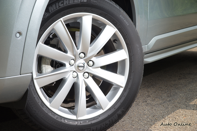 面容與高規車型差異小![]() ▲「索爾槌」造型的頭燈是XC90的招牌特徵。與配備比較高階的Inscripotion相比,在外觀上D4 Momentum其實並沒有多少差別,車頭部分Momentum的亮黑式直柵水箱罩與Inscripotion在式樣上略有不同。 ![]() ▲將大型廠徽整合其中的黑色直柵水箱罩。![]() ▲233/55尺碼輪胎搭配19吋十輻拋光鋁圈。![]() ▲Momentum排氣尾管為圓形,與Inscripotion的方形不同。