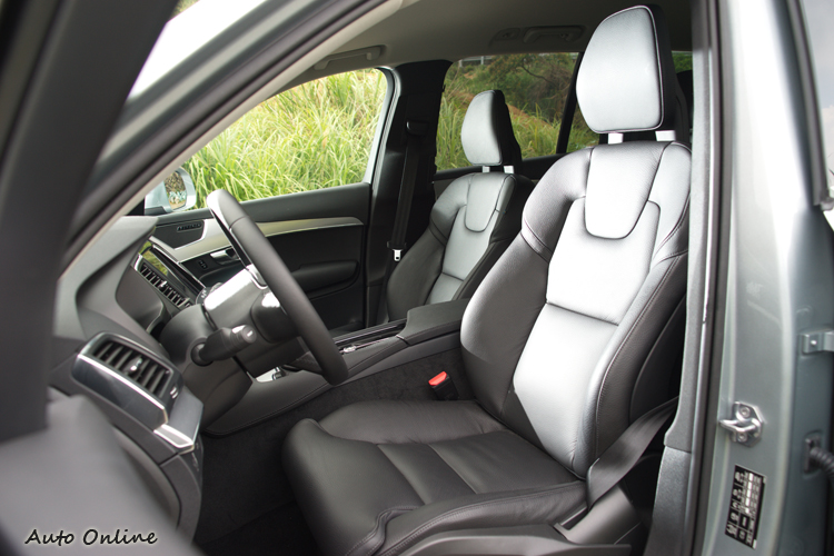 ![]() ▲前座中央後方有120V插座提供電器使用。XC90的空調系統依據五人座與七人座車型的不同而有不同設定,七人座為四區恆溫包含手套箱保冷功能,五人座則為雙區恆溫。黑色的車室內裝中,則是搭配斜紋鋁合金嵌飾板。造型看似複雜的座椅對身體有不錯包覆性,特別是對側邊的支撐不管是上、下半身皆有加強,座墊看起來並不特別厚實,但有著充裕不偏軟的支撐性。 ![]() ▲前座椅有加強側邊包覆設計並提供腰靠四向電動調整。