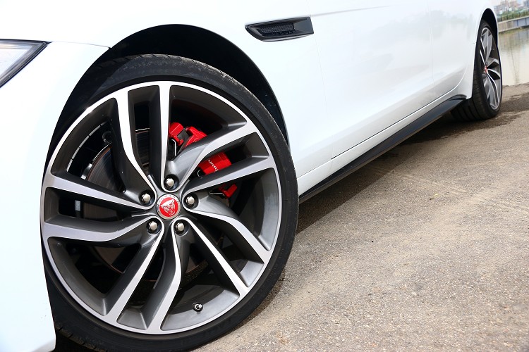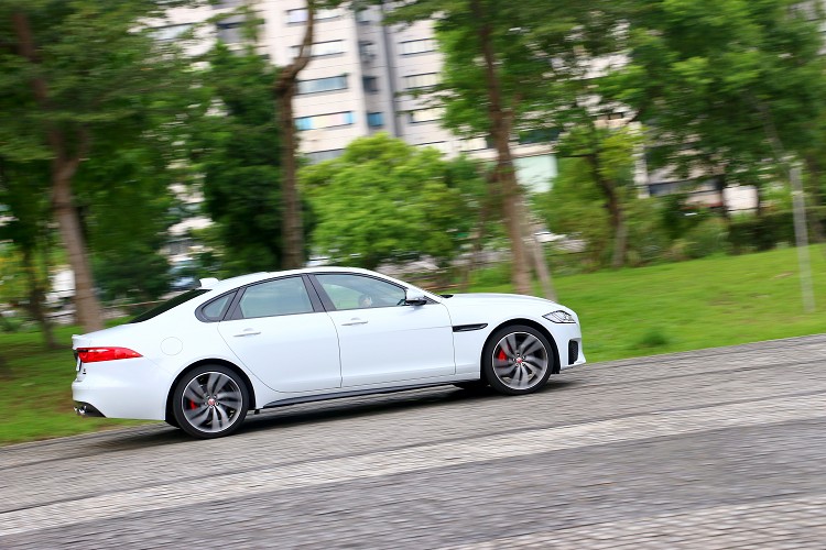 想要成為龐德之前必先駕馭它的愛駒,而XF S卻是如此容易上手,優異的性能數據下,本性沒有太大的脾氣,偏向舒適的調性,就同豪華房車般的優雅,在一般模式或者ECO模式能把叛逆性格隱藏得很好,順順加速、順暢過彎,不會令人察覺它的不同。當遇到突發狀況,行車模式切換至方格旗運動模式,中控台各類燈光轉成紅色,引擎與變速箱性格大變,如同脫韁的野馬隨時準備好跳脫閘門,油門訊號放大、變速箱盡可能維持低檔位,轉速會被Hold在輸出高原,伴隨而來是後方激昂的排氣聲浪。轉速攀升快速,時速不拖泥帶水,向表底快速前進,那種力道非常線性,保有豪華房車該有的格調。