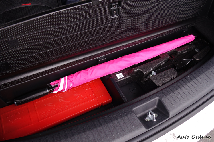 ▲行李廂捲簾橫桿平時可以放在底板下的小隔間,當然這裡用一把長傘也應該很不錯。