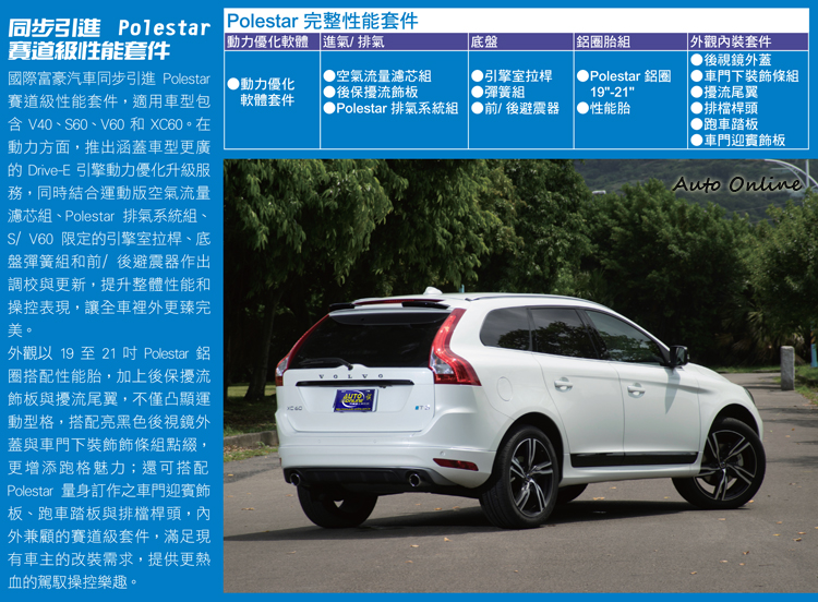 ![]() 而在T6引擎加入車系成為新動力旗艦之後,VOLVO Car Taiwan倒也沒有因而完全移情新歡、冷落舊愛,為17年式的XC60 T5除了「定番」的R-Design熱血空力套件之外,再加碼導入8 項 Polestar賽道級套件來為全車從內至外增添性能氛圍。