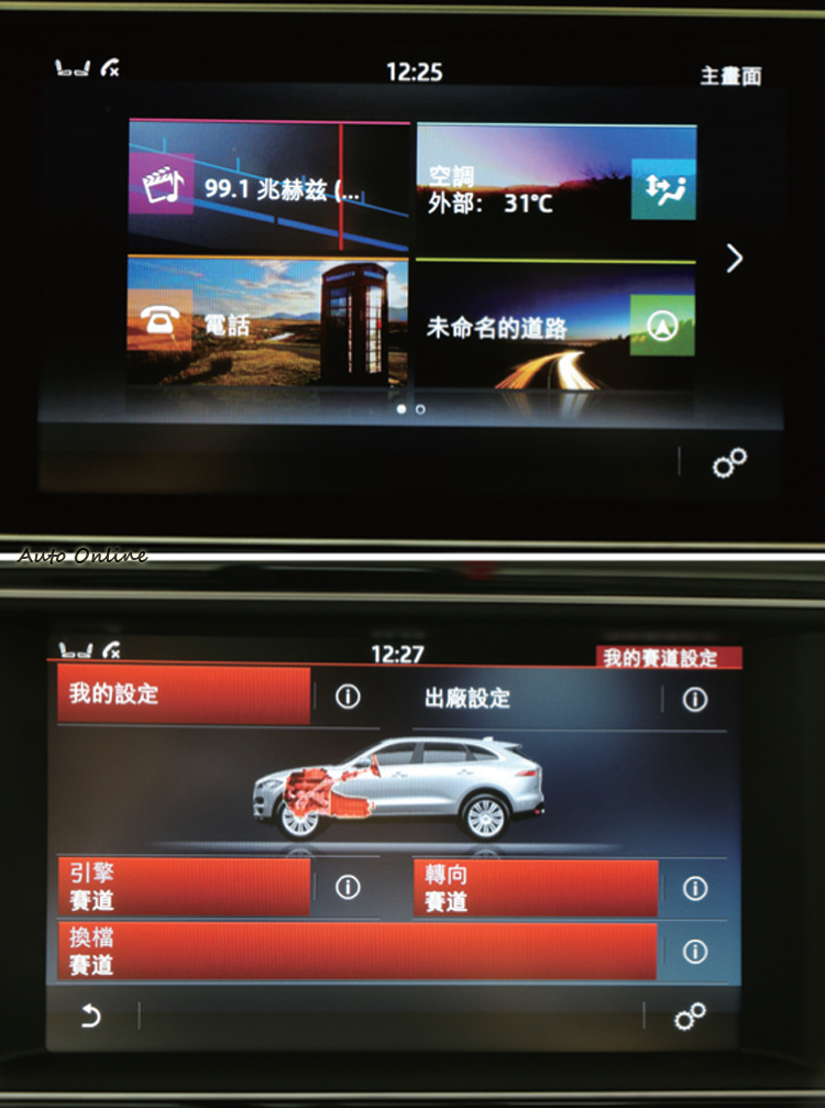 傳統格局中的創新![]() F-Pace的座艙操作介面設計上仍屬於傳統上以中控和儀錶檯為主體的佈局,中央螢幕非但沒有跟隨立式平板獨立設計的風潮,還彷彿故意和流行唱反調,採用老派的方正內嵌風格。如果光看這個部位或許可能讓人哈欠連連,但綜觀整個車艙設計卻依然高雅有質感,或許這也是直覺就手的秘訣。 ![]() ▲雖然不是全數位儀錶,行車資訊顯示幕仍提供了豐富的設定與資訊內容。![]() ▲8吋中央觸控顯示幕雖然沒有新潮的造型,內部功能卻十分豐富華麗。![]() ▲ASPC系統成了它的越野利器,宛如就是越野版的定速巡航系統。![]() ▲即使真正捨得下場玩沙的買家不多,跑車型SUV仍舊保留了征服地形的能力。![]() ▲ASPC也同時取代了過去的陡坡緩降功能,如今連上坡也可在指定速度下自動完成。![]() ▲感應手環接近J字,即使原車鑰匙在車內也可上鎖,且該鑰匙會暫時失去發動功能。![]() ▲F-Pace不愧跑車之名,只因它的一切動態表現,就是跑車該有的樣子。![]() ▲開啟ASPC時,只要有一個車輪還沒有離地就可成功脫困。焦點再度回到座艙內,JAGUAR的產品一向在內裝設計上相當出眾,擅長將豪華家居的溫暖空間概念融入車艙鋪陳,這與德系品牌常見以冷冽前衛的元素塑造出科技感的作法,可說大異其趣。而JLR的產品對於音響系統的重視也是有名的,因此車系最基本就有Meridian 380W頂級音響系統,還把中文衛星導航系統列為標配。 ![]() ▲獲益於長軸距特性,後座寬敞程度優於同級。![]() ▲雙區恆溫及全景電動天窗都被列為全車系標準配備。![]() ▲基本508L的行李空間,必要時使用側邊的快速釋放拉柄,就能翻摺後座椅背加以擴充。![]() ▲以質感而言,F-Pace在細節的部位也相當到位,果然是講究精緻的英式風格。
