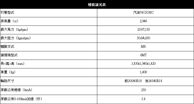 ▲3.0升V型六缸引擎,最大馬力255hp/7,150rpm,扭力最大為30.6kgm/4,650rpm。