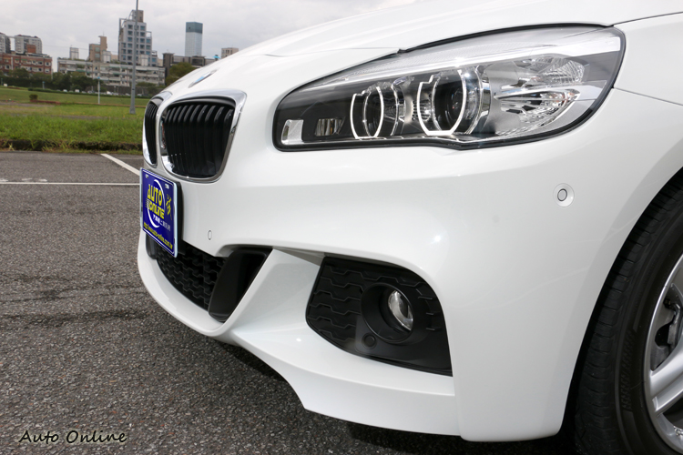 家庭與熱血不衝突![]() BMW 2AT車長4,342mm、寬1,800mm,設計上保有家族特徵,包括向前微傾的雙腎形水箱護罩,搭配標配LED四圓頭燈含轉向輔助燈、短前懸、長軸距的設定,以及Hofmeister kink C柱倒勾曲線和L型LED尾燈等等,讓2系列Active Tourer不更擁有運動氣息的視覺感受。 ![]() ▲車頭下緣有面積較大的霧黑進氣罩,保桿的造型講求空氣力學,有著較為流線的造型。![]() ▲鋁圈的規格與一般車型相同為17吋,只差別造型與上面有M專屬字樣。![]() ▲車尾下半部有刻意透過顏色、材質達到視覺上運動感,那種類似Diffuser的樣式好看大過於實質功效。