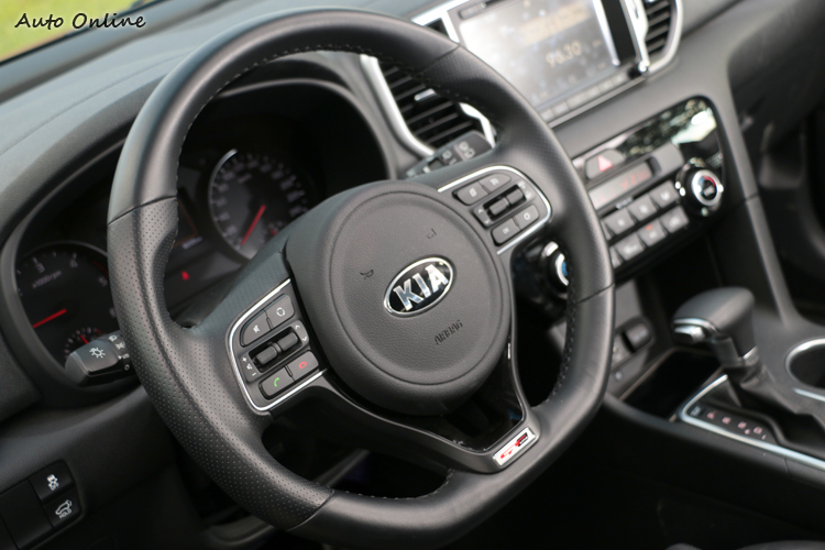 GT Line車型比起一般車型,內裝配備則以鑲嵌GT銘牌的跑車化平底方向盤附方向盤換檔撥片、Push Start & Smart Key智慧感應啟動系統、鋼琴烤漆內飾板、無線手機充電、Sportage迎賓踏板、電動調整座椅(駕駛座10向、副駕駛座8向)等,給予車主個性滿點與便利用車的專屬車艙氛圍。