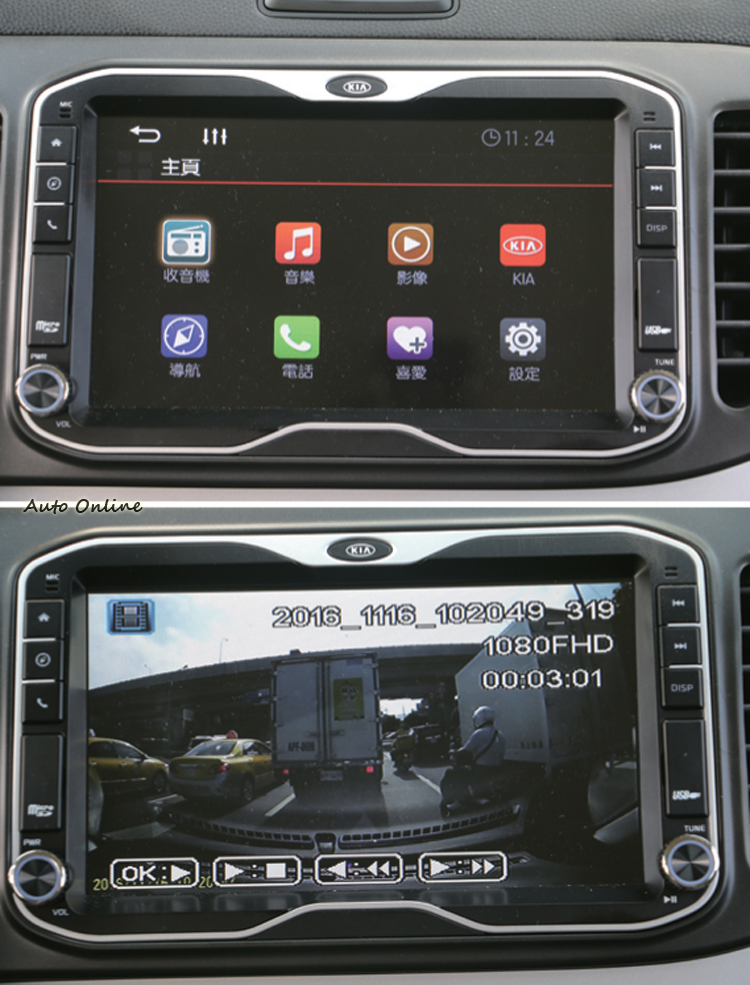 ![]() 至於比較實質的改良,我們首先注意到的是它的操作介面。KIA morning所用的雙幅方向盤雖然維持只能上下調整,不過皮質包覆的手感意外地好!我們喜歡的是符合人體工學的握幅尺徑和造型,以及軟硬適中的包覆用料,搭配沒有過於浮誇的霧面飾板,避免了一般低價車常見的廉價塑膠感。光從這個小地方,就能看得出來KIA近年能以設計走紅全球,絕非浪得虛名。此外,改款前就已經具備多功能控制鍵,但現在隨著定速巡航裝置的新加入,按鍵位置的排列方式必須重新進行調整。原本分列兩側的音量與選曲鍵,已經全部整合到左邊的音響控制區,並且把按鍵與上下選擇鍵對調位置,這使得操作時再也不會出現誤觸現象了。右邊則換上定速巡航控制,至於原來可用來撥接電話的實體按鍵就不得不被取消了,這是小小可惜的地方。經由這樣不起眼的調整後,操作邏輯顯得更合理,使用上也更為就手。 ![]() ▲多媒體音響系統提供USB/藍牙/AUX-IN等外接音源,還預留行車記錄器的顯示功能。