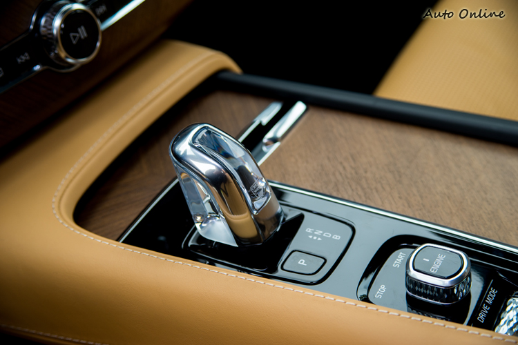 排檔座上的則是Orrsfors水晶排檔頭,與座椅及斜紋胡桃木飾板共同鋪陳出車室的豪華氣氛。