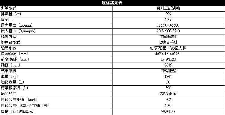 以0-100km/h加速10.0秒成績來說雖然看起來普普沒有太大亮點,但實際開起來它的起步與低速加速反應並不差,應付都會有走停停的交通環境還算輕鬆自然。