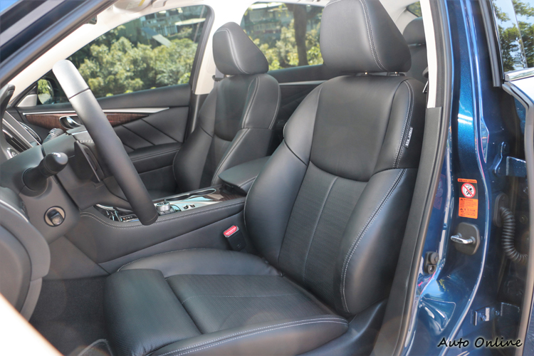 再來就是它的乘坐舒適性,以一輛中大型房車來說,它幾乎與歐系車的質感相同,但我認為如果是比擬M-Benz或者BMW,它的調性更接近BMW,以駕馭樂趣為主的底盤設定。懸吊偏向硬朗又不失舒適性,想快、想慢都能得到不錯的體感。駕駛可調整Infiniti Drive多模式行車控制系統,有標準、運動、節能、雪地、個人化五種,改變引擎輸出、變速箱與VDC介入時機,得到多種調性滿足駕駛需求。