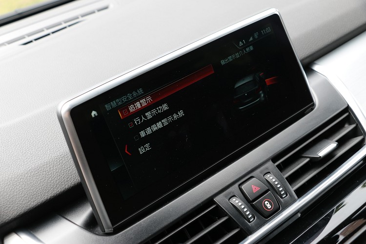 Sport Line套件加持帥氣度大增![]() ▲採用全新「C」型黑色高光澤飾條勾勒前保桿進氣壩,並使用條狀式LED前霧燈。小型多功能掀背車造型能再走原BMW過於帥氣風格,注入家庭圓潤、時尚元素,使2系列Active Tourer有別於其它BMW韻味;試駕車款選配了Sport Line風格套件,某些飾板與一般車型不同。改款後主要針對車頭擁有更為放大的雙腎型水箱護罩,因高度、寬度皆有增加,與頭燈的位置靠得更近。採用全新「C」型黑色高光澤飾條勾勒前保桿進氣壩,並使用條狀式LED前霧燈,搭配LED頭燈含遠光燈輔助系統、全新六角造型日間行車燈,整體車頭有著銳利侵略性。 ![]() ▲鋁圈規格因選配Sport Line套件升級為18吋224/45R18輪胎規格。![]() ▲Sport Line套件在車尾換上黑色高光澤飾條,搭載直徑90mm的雙邊單出排氣尾管。![]() ▲雙跑車座椅可選擇 Sensatec皮質或高級織布座椅搭配專屬橘色或灰色縫線。![]() ▲先進的BMW智慧安全駕駛輔助,含主動防撞輔助系統與行人偵測功能、車道偏離警示功能等。