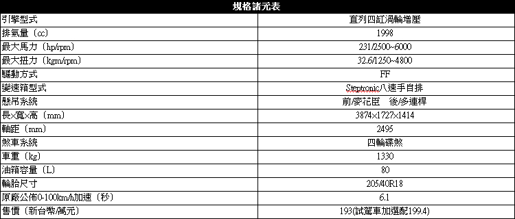 JCW套件加持畫龍點睛![]() ▲JCW專屬銘牌位於水箱護罩,引擎蓋上的是條為選配售價為7000元。改成德國底的MINI在這次小改款中徹底展現英式魂,特別注重小細節質感提升,就算是性能版JCW也不例外。車頭經典鍍鉻外框包覆的LED頭燈,更結合了全新環形LED日行燈設計。 ![]() ▲英國米字旗尾燈是這次改款的外觀重點。![]() ▲特殊造型的後尾翼,美觀大於實質效益。![]() ▲原廠所搭配節能取向的倍耐力P7輪胎,對於樂趣大打折扣。