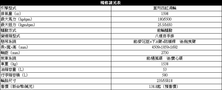 ▲1.6升渦輪引擎具有180匹最大馬力輸出。