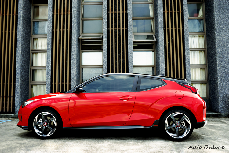並在前後輪上康刻意加入造型折線來強調輪拱,讓18吋旋動雙色鋁圈的視覺感更強。比起車頭與車側,車尾造型算是最為「強悍」。以多道造型線條營造豐富層次和稜角剛硬的形象。而一些空力件如前下擾流、車尾分流器、車頂後方的擾流尾翼等,再加上從車旁看步道的底盤平整化工程,讓人感到除了玩心與一些潮味外,新Veloster也在運動跑格上更下功夫了。
