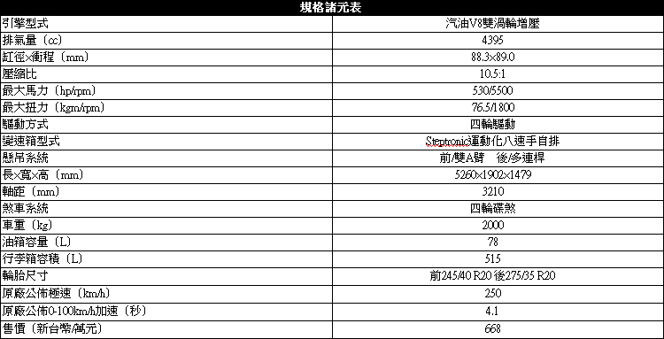 最大馬力突破500百匹,結合四輪傳動無笨重感