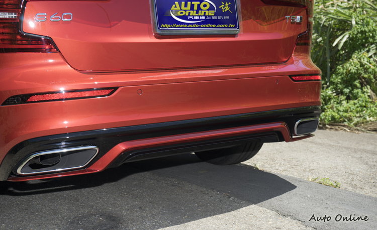 R-Design車型下方有黑色裝飾護板來整合左右兩側的車型專屬式樣方形鍍鉻尾管。