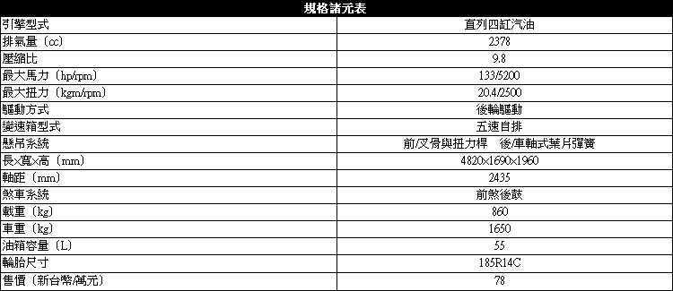 方便好開的自排新選擇![]() ▲所搭載的2.4升汽油引擎在馬力與扭力上都有小幅增加。對於每天載貨運貨的人來說,除了空間要大之外,車子是不是耐操有力當然更是關心焦點。新Delica搭載代號「4G98」的2.4升排氣量直列四缸汽油引擎,其133hp/5250rpm最大馬力與20.4kgm最大扭力的動力輸出與改款前相較分別提升15%與6%。不過更大的焦點則是現在除了六速手排外,還有這次試駕的五速自排車型追加至車系之中,讓一些對手排不太熟悉的年輕世代或部分女性族群可以開得比較輕鬆,為工作奔波的路上更輕鬆安全。 ![]() ▲這次改款的亮點之一就是追加五速手排讓更多買家輕鬆上手。