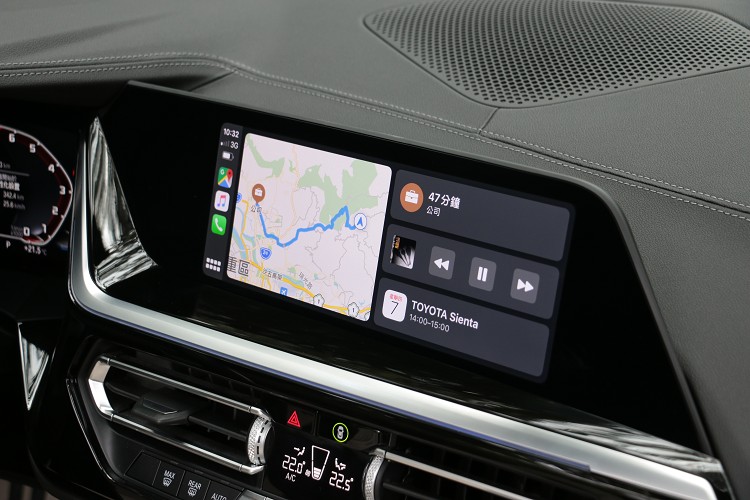 內裝部分承襲了G世代的家族風格,儀錶板、中控台螢幕、冷氣、中央鞍座介面再熟悉不過。科技層面搭載由10.25吋虛擬數位儀錶以及10.25吋中控觸控螢幕所組成的iDrive7.0新世代全數位虛擬座艙,多重行車模式儀錶板中央區域可顯示完整的智能衛星導航系統圖資,人性化的操作邏輯以及純粹駕駛者導向的設計讓人愛不釋手。中間觸控螢幕提供基本衛星導航、影音系統、USB音原輸入等,最重要支援無線Apple Carplay連接,快速的把生活與車做結合,無縫接軌達到最科技生活日常。
