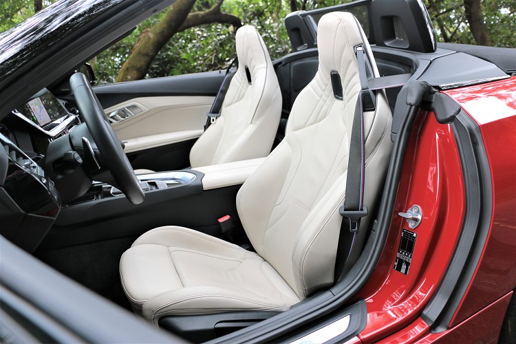 雙座的敞篷跑車設計,柔軟細緻的Vernasca真皮跑車座椅,一體式筒形設計的M款跑車座椅搭配可電動調節的側向支撐,提供絕佳的跑車支撐與包覆性,可前後調整23mm,任何身型都能找到最舒適的駕駛姿勢。M40i標配的M款多功能真皮方向盤締造無可挑剔的優異質感,就跑車而言,整體有著高質感的演出,巧妙的把豪華與跑格完美結合。