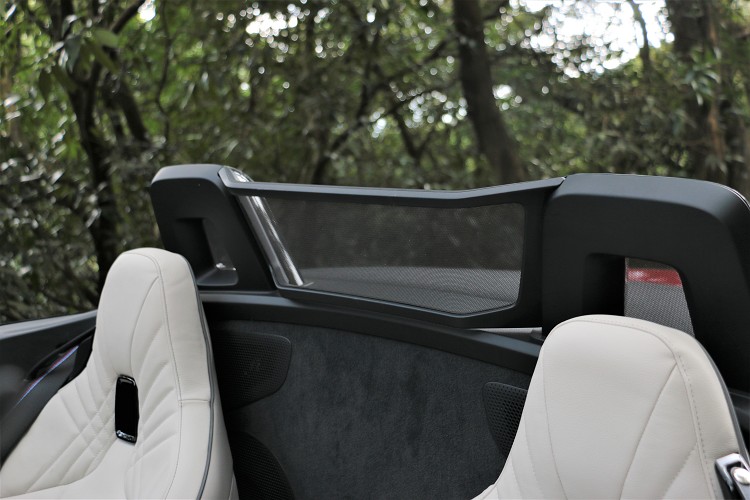 ▲開篷後可以看到粗壯的倒U型防滾架,U型防滾架中間設計有手動拆卸迴風網。