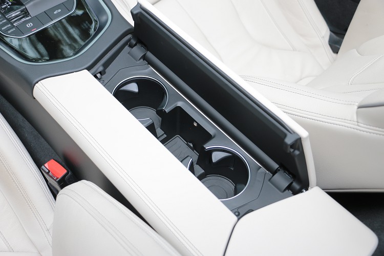 ▲置杯架設計有點奇怪,使用時必須開啟中央扶手一邊,副駕駛的左手就會卡卡的。