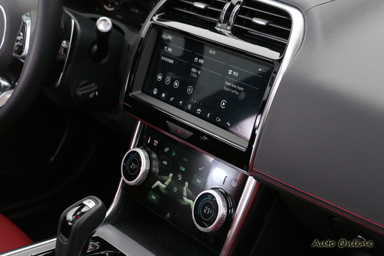 ![]() 內裝以全面革新進化的跑車式座艙為出發點,延續Jaguar引以為傲的細膩工藝與頂級材質鋪陳,大量採用質感冷冽的鋁合金飾板,搭配黑色頂篷強化運動化氛圍,展現簡約俐落的當代英倫風格。 ![]() ▲火紅的跑車化座椅,打開車門就能感受到濃濃跑格味道。![]() ▲Touch Pro Duo智慧多媒體雙觸控中控台是來自於I-Pace的概念。![]() ▲原本的旋鈕式排檔頭被SportShift Gear Selector跑車式排檔桿給取代。