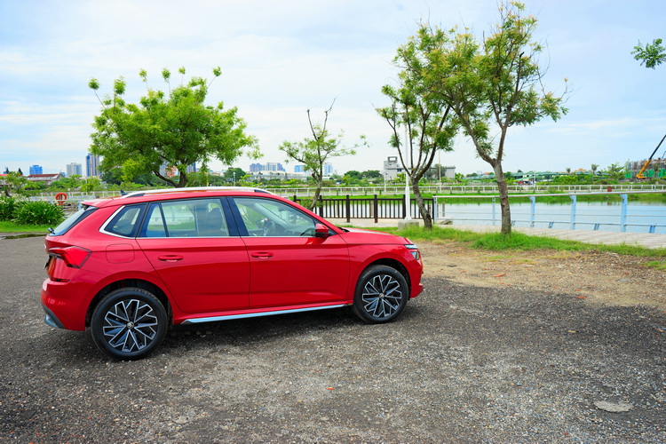 車側與車尾則不管是LED尾燈、車身腰線、車身下方造型折線與行李廂蓋造型都大致維持在之前Vision X概念車的設計,讓它在方正線條的主調中仍能顯出年輕與個性的一面,筆者個人認為Kamiq比較為中規中矩的Karoq還能跳出自己的特色。
