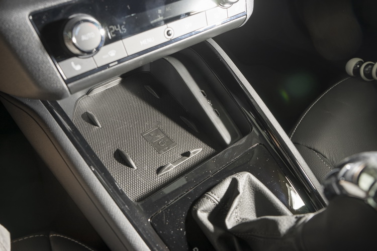 中控台下方收納空間支援手機無線充電。