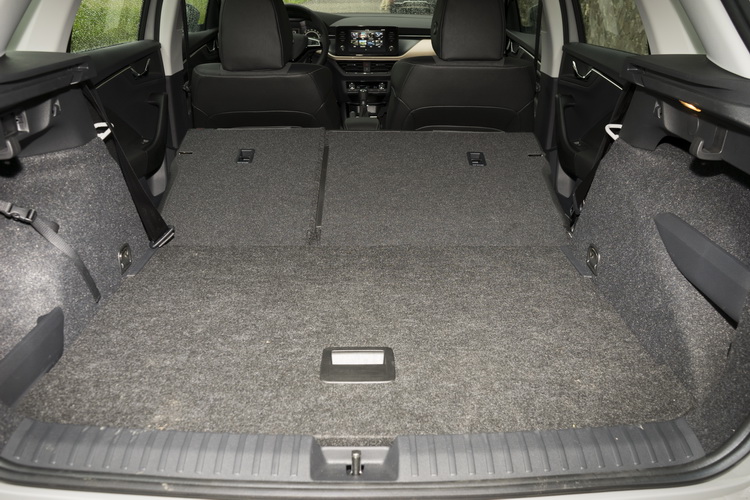 比Scala短小一些的車身對行李空間有較大的影響,行李廂基本容量為370公升,含打氣機與補胎劑收納空間的話為400公升。在將後座椅背向前放倒後,連同行李廂活動隔板下方以及後座腳部空間都加起來算的話可達1395公升。且後座椅背放倒後與行李廂活動隔板高度一致,平整的設計也更好放置物品。
