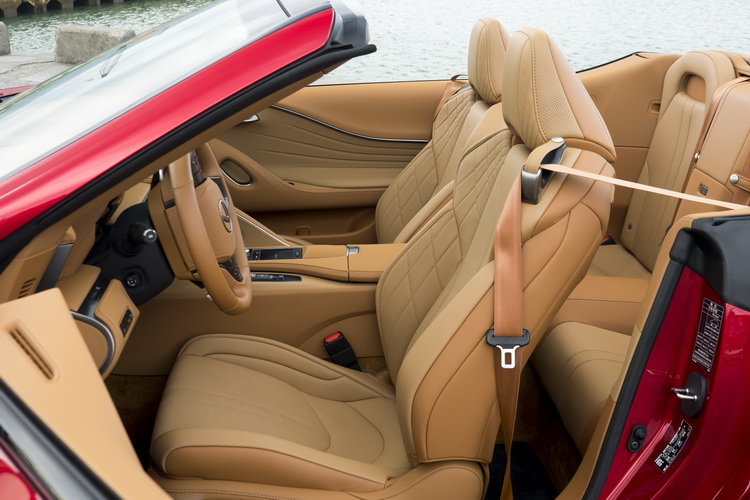 內裝設計基本上與硬頂車型相同,大比例使用真皮、、Alcantara人造麂皮及金屬來鋪陳車室。駕駛姿勢不像大部分其他LEXUS車那樣地讓小腿向前伸直放鬆(小編:駕姿比較接近一般車,會更適合激烈一點的操駕的概念嗎),且不論是踏板、操控按鍵的配置、方向盤傾斜角度與座椅的包覆設計等,都考慮到駕駛時能夠更直覺就手。