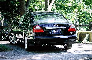 Q45的外型是在挑戰買家對新造型接受度的極限,鍾情於方正氣派造型者,不易接受Q45這種帶有美式風味的設計。懂得品味速度者,將深受Q45強力動感吸引…