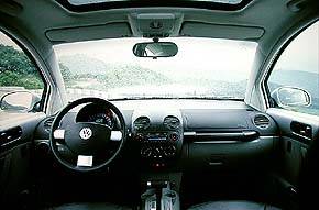 裝可愛的New Beetle穿梭在大街小巷中,在車陣裡特別突出耀眼,如同在整排便當盒中擺上一個小饅頭,加上車頭和車尾鵝蛋燈組設計,如果又是綠色的塗裝,很難不聯想到小青蛙那副Q模樣。這樣一部賣相前導的三門「圓背」房車該如何駕駛才符合駕駛者氣質?順順開、慢慢開、心平氣和得開、遵守交通安全得開、為世界和平而開…,而且別忘了在駕駛座前的花瓶上插一朵鮮花,增加車室內的高雅氣質,乘坐New Beetle上路,將成為路人稱羨的焦點。