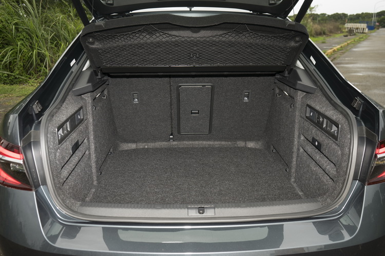 行李置物空間表現是Superb的強項,行李廂收納空間即使是只算到後座椅背高度也有625公升(包含41公升的備胎室空間),如果是算到頂到斜背尾門的空間的話更可達到722公升,不過後座椅背高度上方的空間不規則,在置物運用上會比較受到限制。將後座椅背向前放倒的話,整個後方置物空間容量達到1760公升,後座與行李廂間有些微高低差,但整體平整度還算不錯。而腳踢感應式尾門列為標配也彌補了斜背尾門在開啟後位置較高,對身材嬌小者來說可能不易搆到的問題。