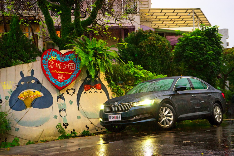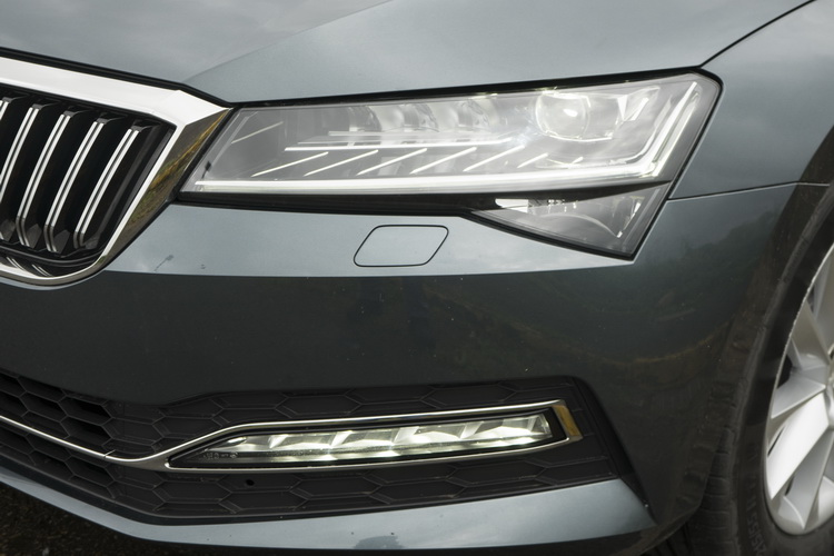 小改款新Superb在外觀上與改款前差異不大,車頭主要的差異點在於前保桿線條有些變化,頭燈現在也與水箱罩是相連的;LED霧燈則是換上現在比較流行的長條設計。水箱罩基本上算是沒變,僅在邊框部分略有加寬,且邊框與格柵都以鍍鉻處理來表現質感。 最大的賣點則是雖列為選配,但在2020年12月31日前訂車者可以享受免費升級優惠的Matrix LED智慧複眼頭燈。這次試駕活動因為遇上陰暗雨天,也正好有機會實際體驗它配合路況隨時改變光形的智慧功能,在幾個大角度的彎中都會立刻隨著過彎而給予所轉方向更廣的照明,遇到對向來車也會將照射角度壓低避免讓對向車駕駛感到眩目。