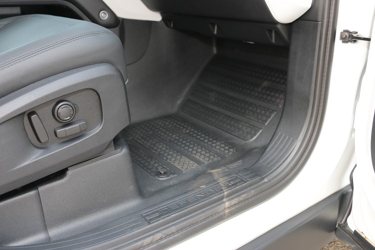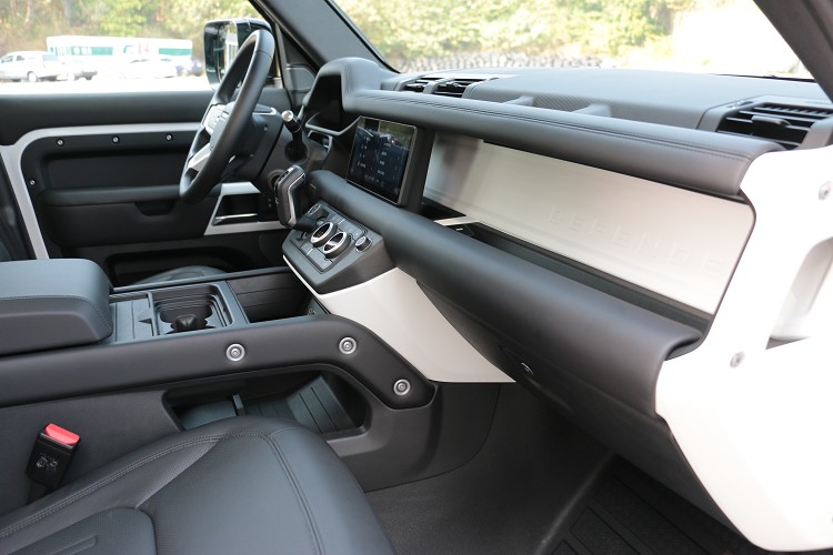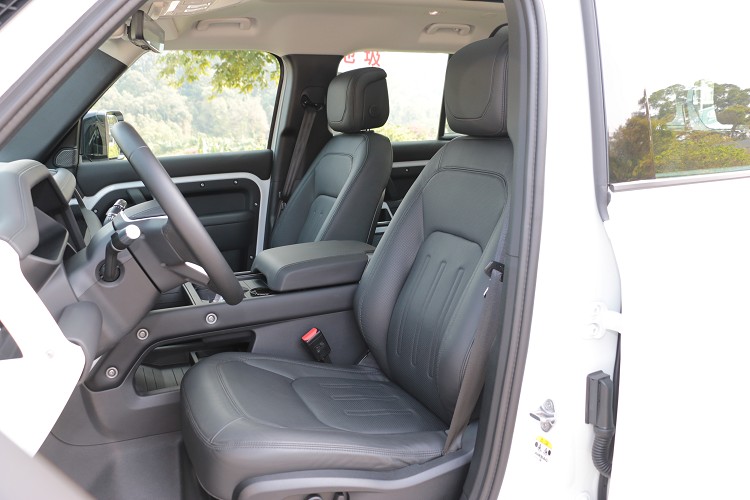 進到車內,原先我最擔心的是Defender會向Range Rover靠攏,車內過於豪華失去該有的機能,但在我看到實車後,心中的疑惑都是多餘。車內主要的配備依舊維持該有功能性,像是防水橡膠地板,弄髒只要用水沖一沖。另外,還有外露式車門鉚釘、耐磨織布座椅椅面等,都可看出Defender還是保有原有經典功能性。