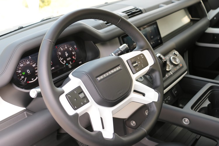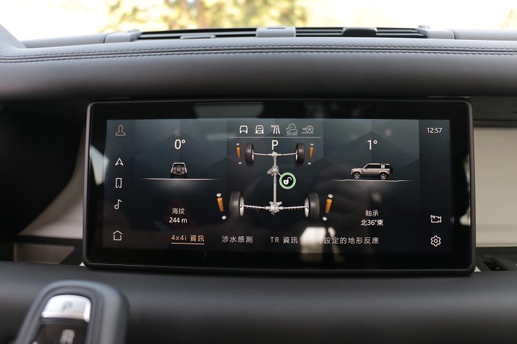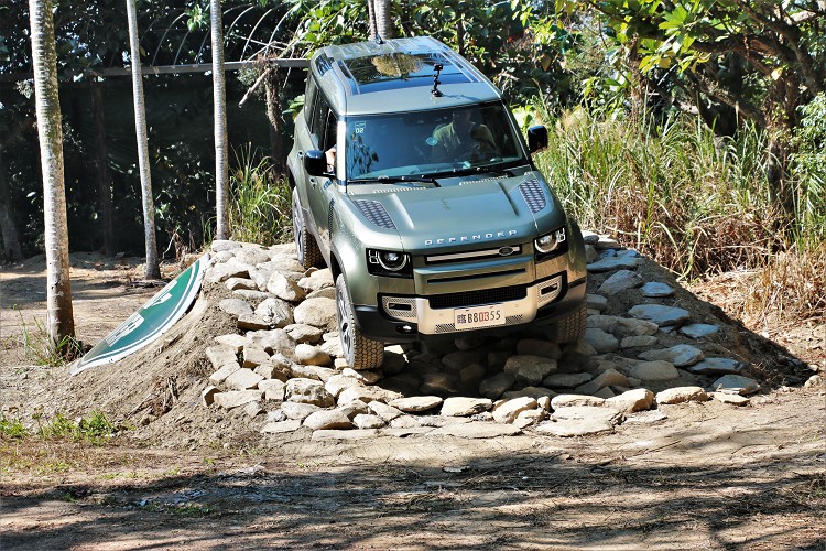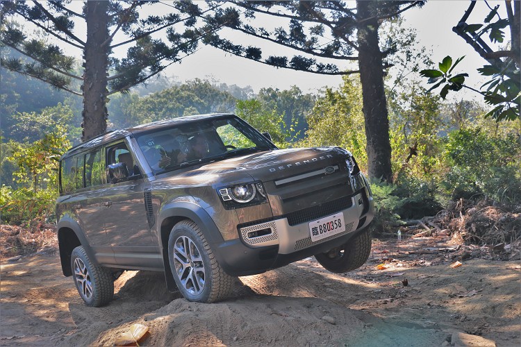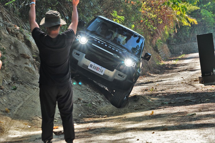 硬派、經典的越野車,當然最在乎的就是功能性,此次原廠刻意安排媒體在一個封閉場地裡,感受新世代Defender強大功能。場地內規劃險降坡、水坑、泥濘道路、砲彈坑、側傾斜坡等,是一個非常嚴峻的環境,但對於Defender來說都算是小菜一疊。在進入非鋪裝路面時,調整相對應的越野模式,這時候電腦會自動偵測,四輪驅動系統、加力箱、中央限滑差速器便開始提供所需支援,如果偵測到大幅度落差路況,懸吊會自動升高35mm,必要情況下駕駛也能手動升高,懸吊最高行程可加高145mm,能征服各種崎嶇地形。