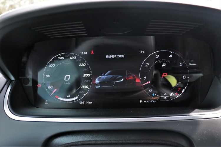 進到車內,駕駛者前方的12.3吋高解析度儀表板和中控台上標配10吋智慧觸控顯示幕,建構起F-Type的科技感。儀錶板可切換不同模式顯示,像是有傳統雙圓、單圓或者全地圖等。中控台智慧觸控顯示幕,支援Apple CarPlay娛樂系統,讓原廠的中文化衛星導航無用武之地。車頂全景天窗無法開啟,主要以採光功能為主,天窗前方則有原廠緊急救援,特殊情況下能得到原廠的幫助。