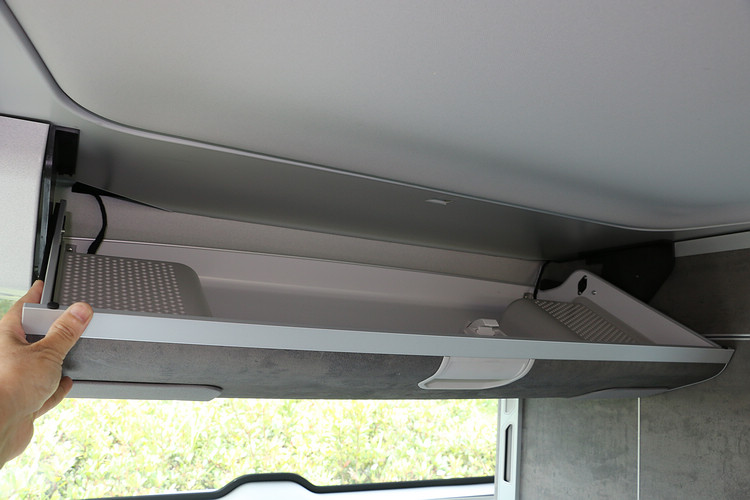 ▲除了多組櫥櫃,後廂上方還設有大型收納空間能夠用來收置棉被。