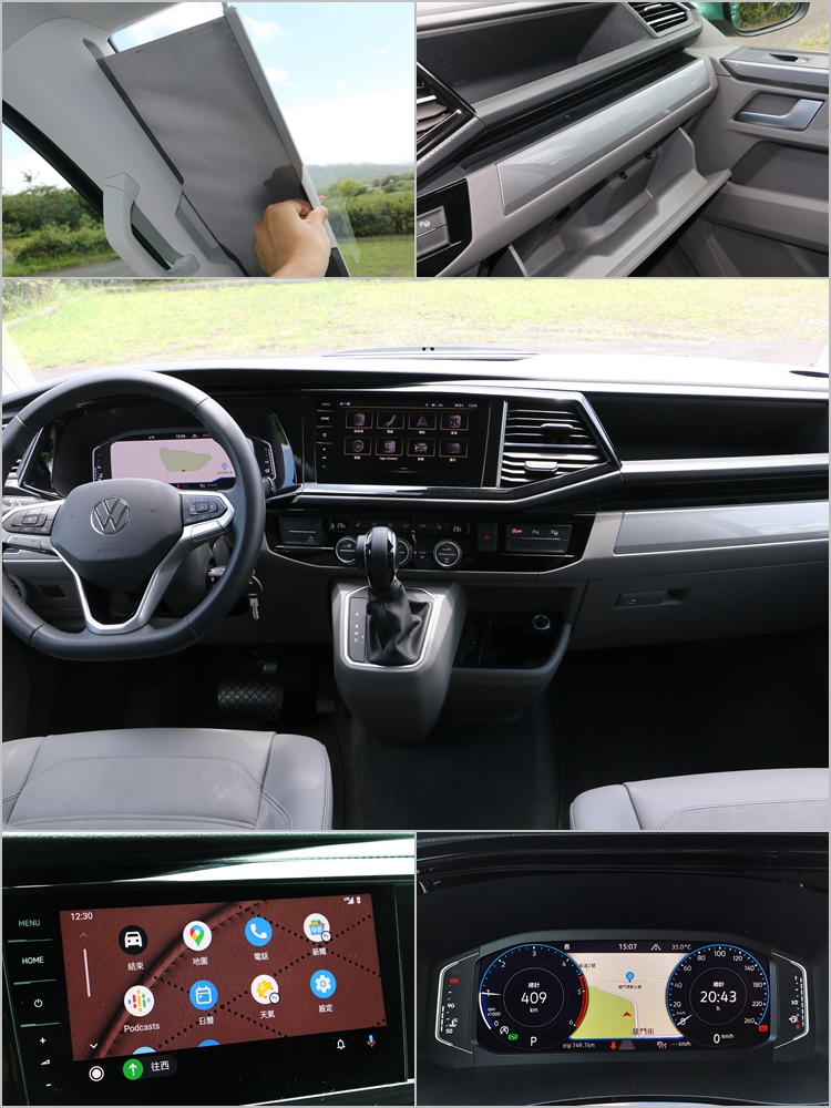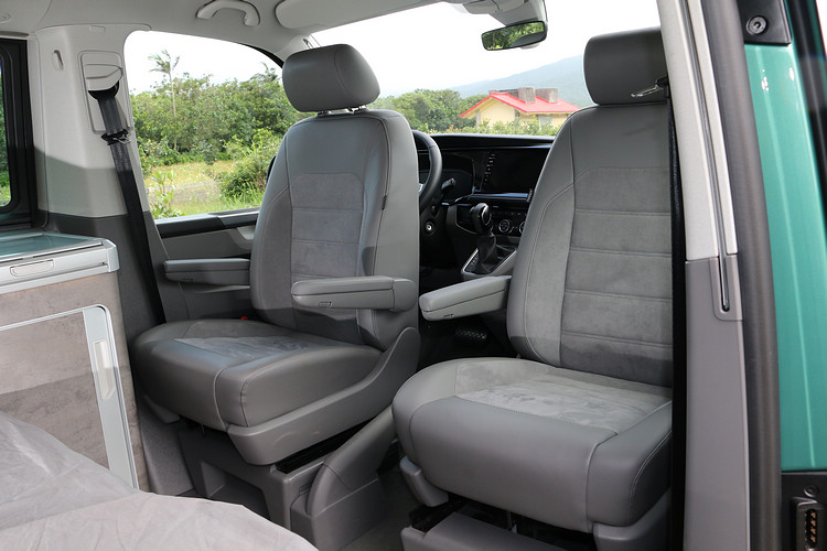 電力供應攸關休閒品質,所以車內隨處可見實用的電源插座,在排檔座、車頂帳內、廚房中島、行李廂側面和C柱旁,都設置了12V或USB-C插座。駕駛艙格局在改款後,和其他T6.1家族車款一樣都換上了全新設計的中控台、10.25吋全邏輯數位化儀表板、9.2吋多媒體觸控螢幕主機和多功能方向盤,這些功能界面相信大家都不會太陌生,這裡就不再浪費篇幅描述了。