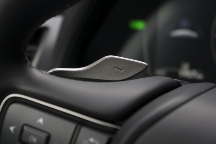 UX 300e在車系中的定位是頂規車型,所以配備最為豐富。駕駛者前方的七吋高解析液晶儀錶顯示幕因應電動車屬性右上方的水溫錶取消改放「LEXUS UX 300e」字樣,下方的油錶則改為電量錶,不過同樣是採類比指針的形式而非殘電量百分比的數位顯示方式,看起來跟油錶沒啥不同。中央的轉速錶改為電量輸出/電量回充的狀態顯示。