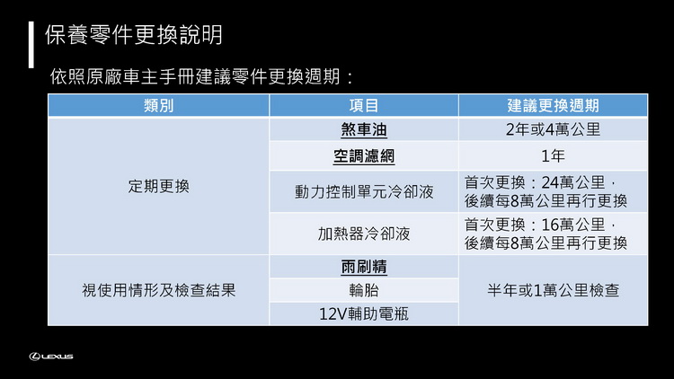 而在空調上,所搭載的智慧空調管家整合了左右雙區恆溫系統、雙前座椅冷熱通風、後座椅加熱與方向盤加熱等功能,調整各項空調功能至令乘客感到舒適的狀態。另外,也是車系中唯一配備nanoe X空氣清淨系統,以奈米氫氧離子清淨技術主動分解PM2.5有害物質,有效抑制病菌達99%且能保濕及去除異味。音響部分仍然比照車系其他弟兄是搭載原廠的LEXUS Premium音響系統搭配六支揚聲器。