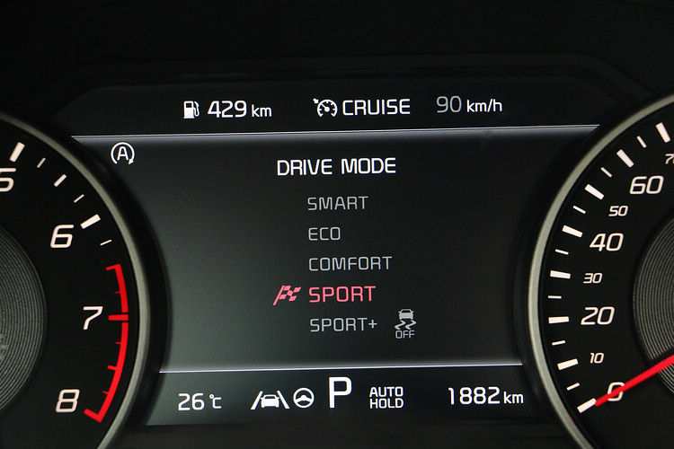 抬頭顯示器投射效果一如以往清晰,除了沒有納入導航資訊以外,已經沒什麼好挑剔的了。至於全新造型的8吋觸控螢幕也很不錯,也少不了支援無線Apple Carplay、Android Auto功能,雖然不是原廠更進階的10.25吋主機,但Harmon/Kardon環場音響、15支喇叭和ASD主動音浪系統,在隔音品質優良的Stinger車內聆聽音響效果,還是一大享受。