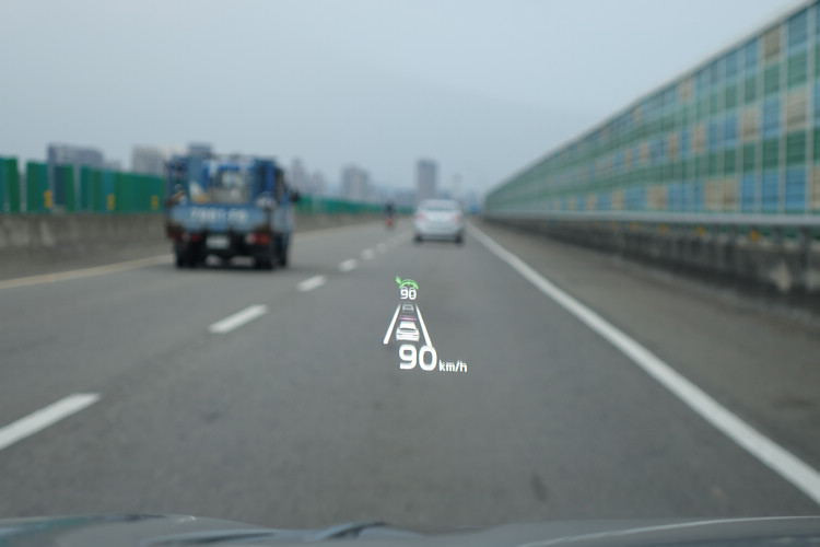 ▲抬頭顯示器也會同步顯示駕駛輔助與警示的資訊,但可惜沒有將導航指示一併納入。